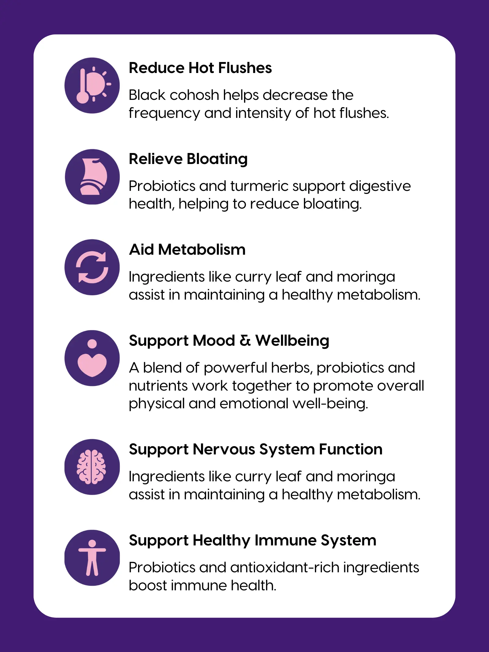 Our ingredients work in harmony to support your body during this transition, helping you feel more energised & balanced.
